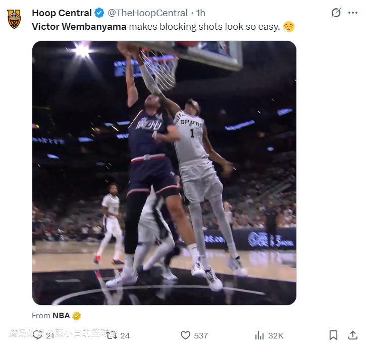 帽翻管子煜!文班亚马16分钟9+10+7+3帽太横 增肌后要统治联盟?