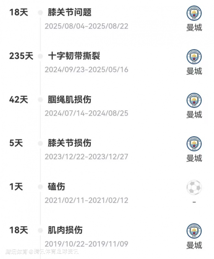 事实上,伤病在罗德里的职业生涯中原本并不常有,在2024年之前,罗德里仅仅遭遇三次小伤,累计伤缺时间还不足一个月。