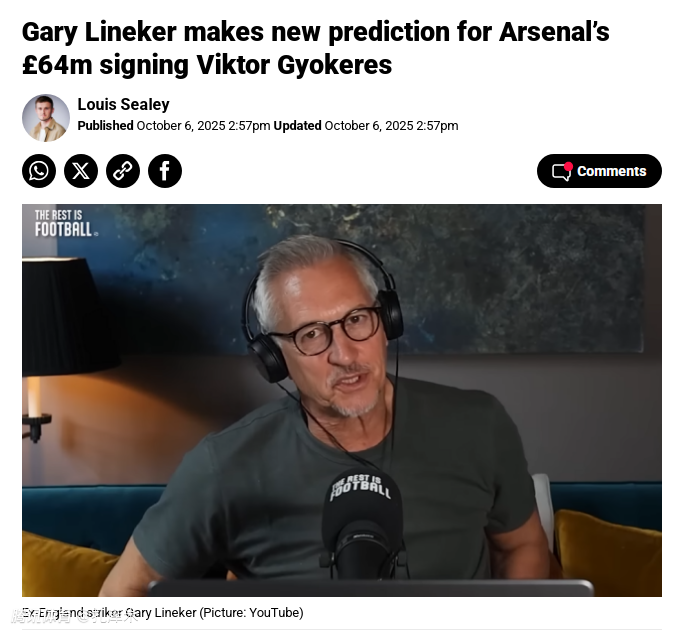 2025-10-07 17:10英格兰足坛名宿莱因克尔在《The Rest is Football》节目中,针对阿森纳本赛季的英超夺冠前景,以及新援哲凯赖什的表现进行了点评,莱因克尔表示,哲凯赖什的发挥是数据无法体现的,是阿森纳争冠的重要保证。