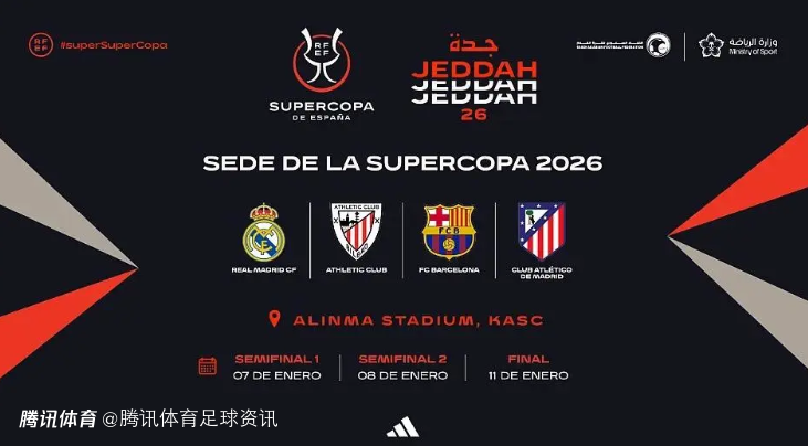其中,巴塞罗那将迎战毕尔巴鄂竞技,而马德里竞技则与皇家马德里交锋。另外,赛事将在沙特阿拉伯吉达举行,这座被联合国教科文组织列为世界遗产的城市将连续第二年、也是第三次承办超级杯。