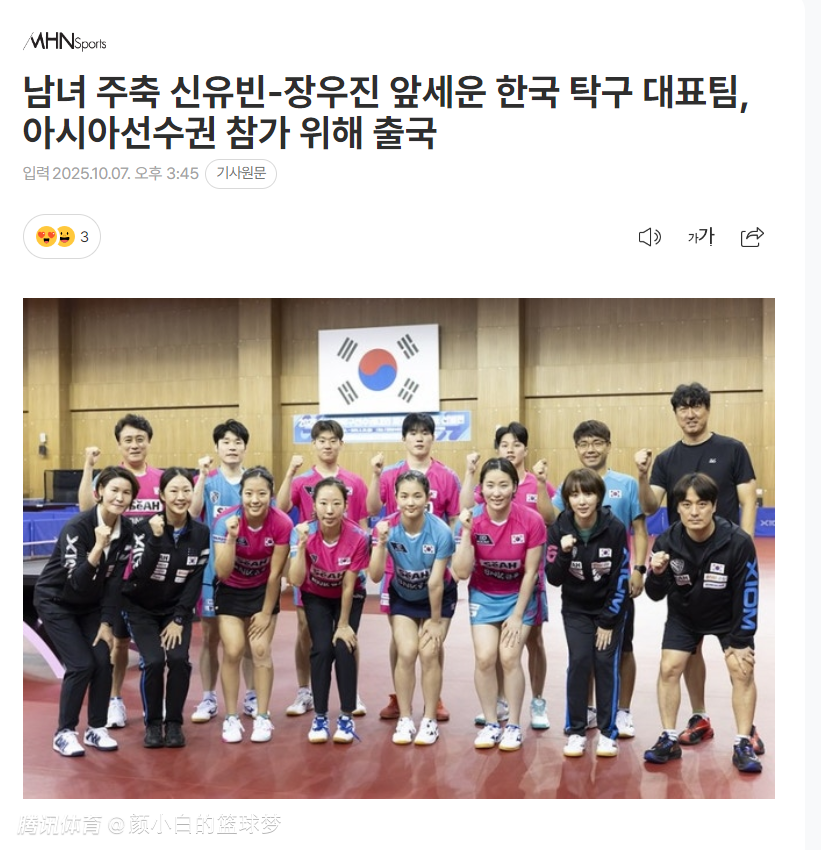 2025-10-08 08:00北京时间10月7日,根据韩国媒体《MHN体育》的报道,韩国乒乓球队(男团/女团)均已抵达印度,他们将在印度奥里萨邦首府布巴内斯瓦尔进行几天的踩场训练,10月11日将开启2025年乒乓球团体亚锦赛的征程。