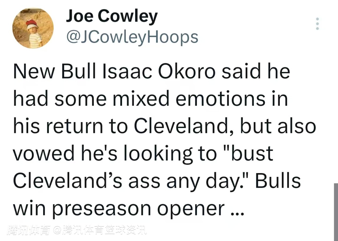 接下来,两队还将再次交锋,届时比赛地点将是公牛队的主场联合中心球馆。对此,奥科罗表示:“联盟这赛程安排还真有意思,但我现在是公牛的一员,无论哪天对阵克利夫兰,我都要全力击败他们。”