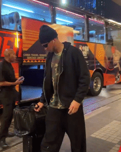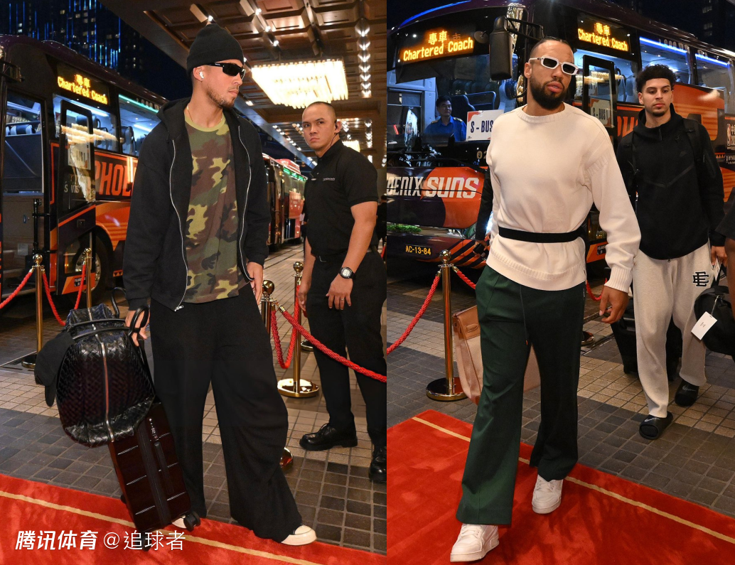 目前太阳和篮网两队都已飞抵中国澳门,布克穿着一身休闲装,戴着墨镜和黑色针织帽,提着行李入住酒店;狄龙的打板十分抢镜,23岁的杰伦-格林则是带着40岁女友参加中国赛,两人手牵手十分恩爱。
