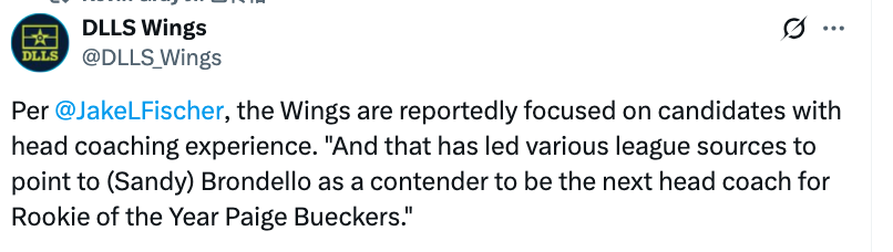 此前刚被自由人解雇!桑迪有望成为达拉斯飞翼队新任主帅