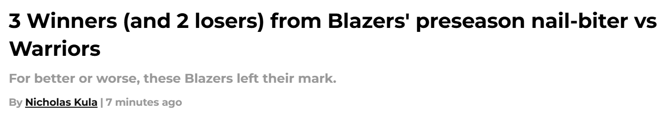 2025-10-09 13:30北京时间10月9日,开拓者季前赛首战123-129输给勇士,遭遇21分大逆转。波兰特媒体Rip City Project赛后对本场比赛的表现进行点评,列出了队内首战的3个赢家和2个输家。杨瀚森因表现不佳,和格兰特一起被列为输家。以下是拓媒的解析——