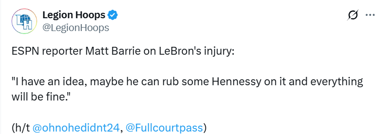 生涯首次无缘揭幕战!詹姆斯因坐骨神经痛缺席3-4周 遭调侃抹点轩尼诗