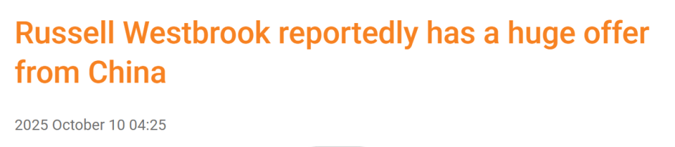2025-10-10 08:40北京时间10月10日,威少目前仍未与NBA球队签约,由于在NBA市场缺乏吸引力,他或许有机会前往海外打球。据国王队记卡迈克尔-戴夫透露,威斯布鲁克收到来自中国球队的重磅邀约。