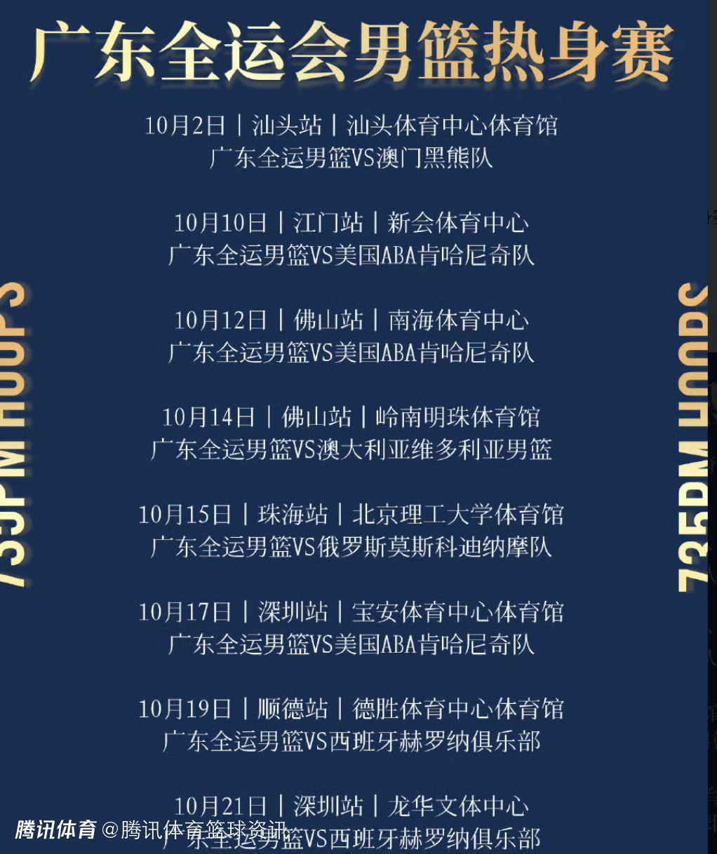 2025-10-10 11:20北京时间10月10日,广东全运会男篮将开启多站热身赛,其中包括有佛山、江门、汕头、顺德、深圳等城市,届时他们将对阵多支球队。