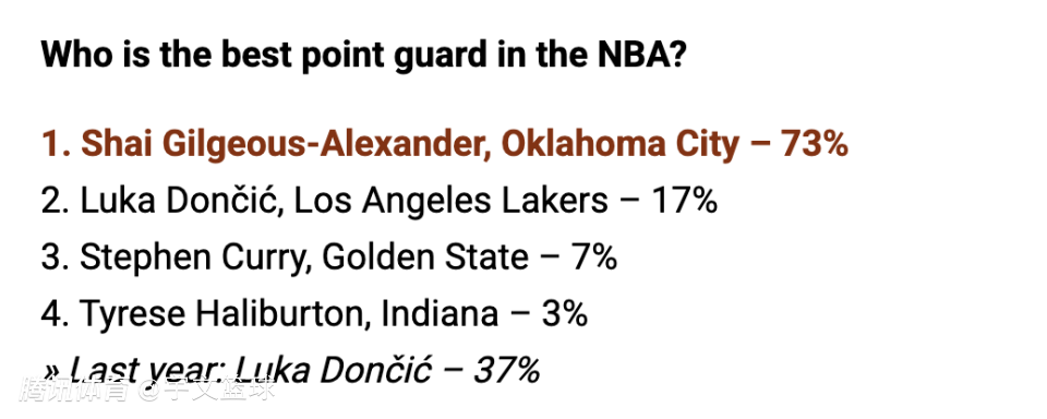 尽管新赛季无法出战,但哈利伯顿依旧获得联盟总经理的很高评价,在最新的总经理调查之中,哈利伯顿两次上榜,他被评为现役联盟第4控卫,仅次于亚历山大、东契奇和库里。