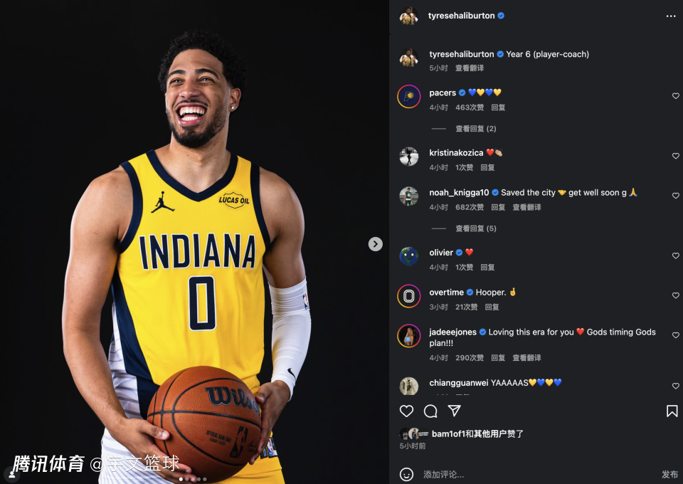 哈利伯顿晒照开启新赛季!调侃自己球员身兼教练一职 仍被评为前三关键先生