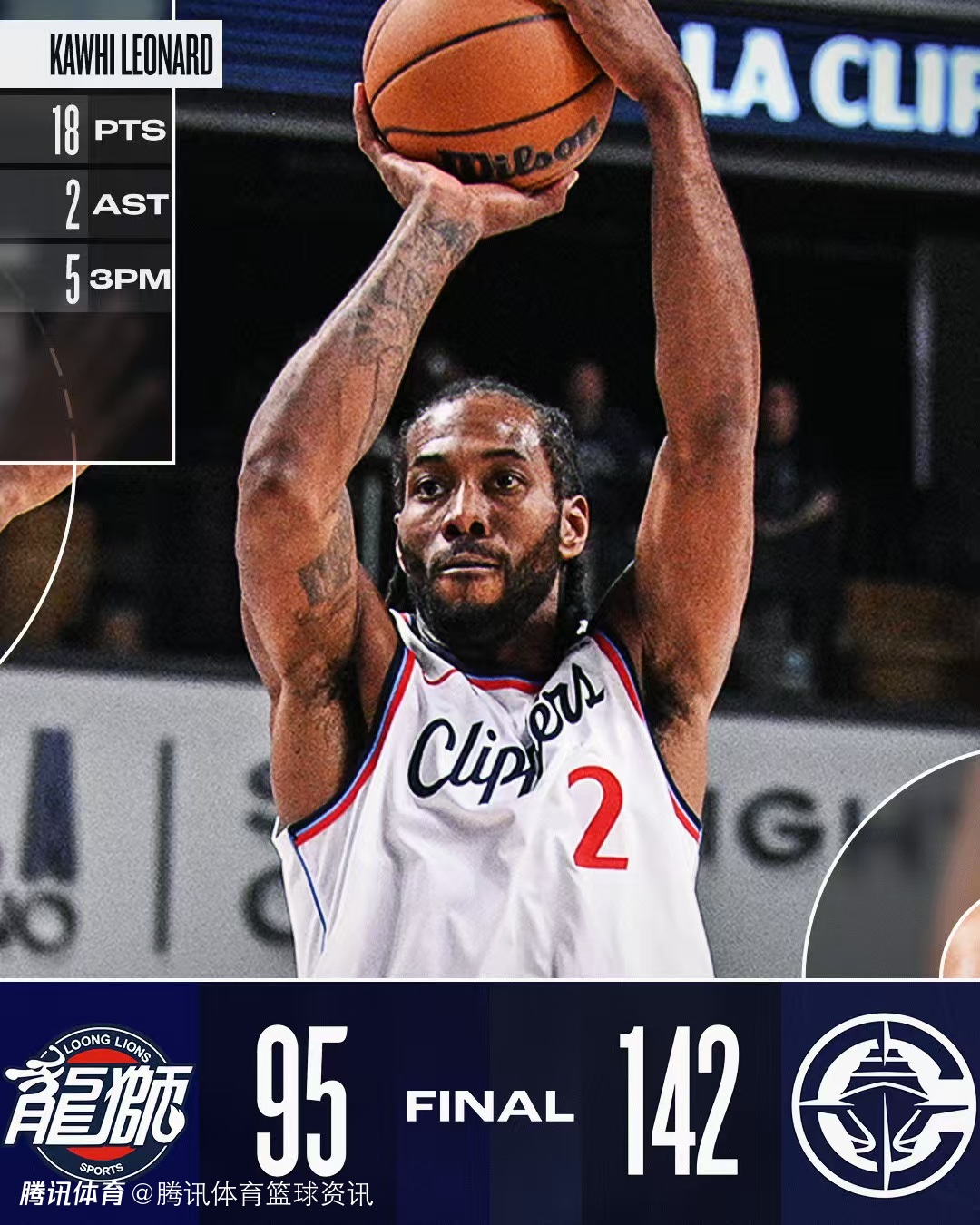 当广州龙狮队离场时,莱昂纳德向对手送上了鼓励:“加油啊,伙计们。说真的,咱们下次见。”