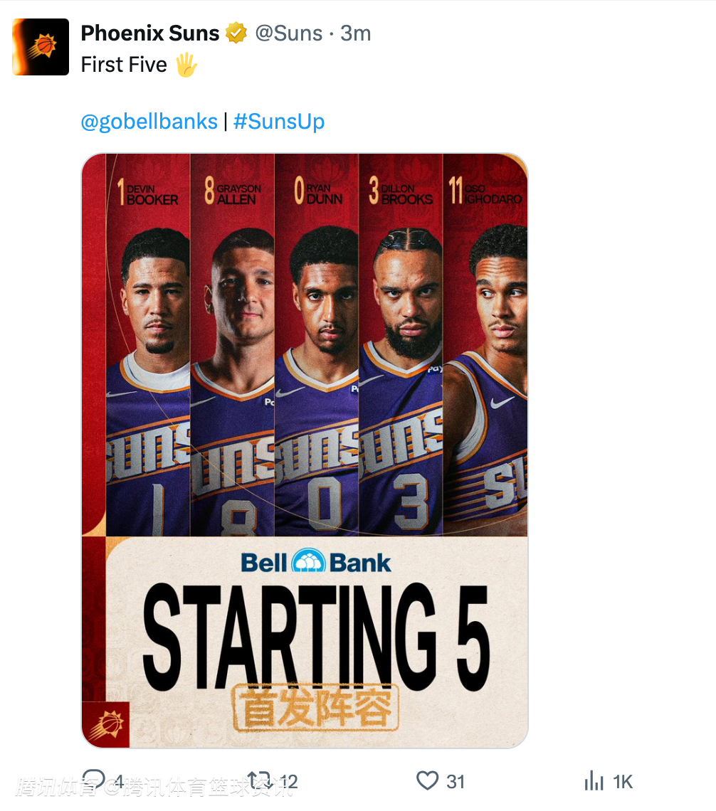 NBA中国赛首发出炉!布克对决波特 太阳官方晒图配上中文