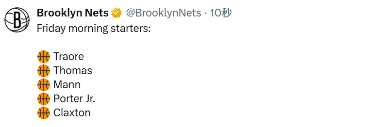 2025-10-10 20:30北京时间10月10日,NBA中国赛在澳门开打,由菲尼克斯太阳对阵布鲁克林篮网。赛前,太阳官方社媒公布首发阵容:布克、阿伦、邓恩、狄龙、伊戈达罗,并在图中配上了中文“首发阵容”的字样。而篮网方面的首发是曼恩、波特、克拉克斯顿、托马斯、特拉奥雷。