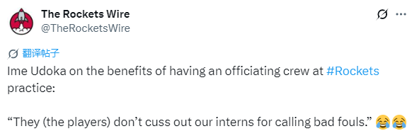 关于球队训练情况,乌度卡说道:“我们在训练中采用“shooting through”,即便有NBA正式裁判在场,训练强度也保持一致,裁判并不会影响失误次数,因为训练核心是球队内部的执行效果。”