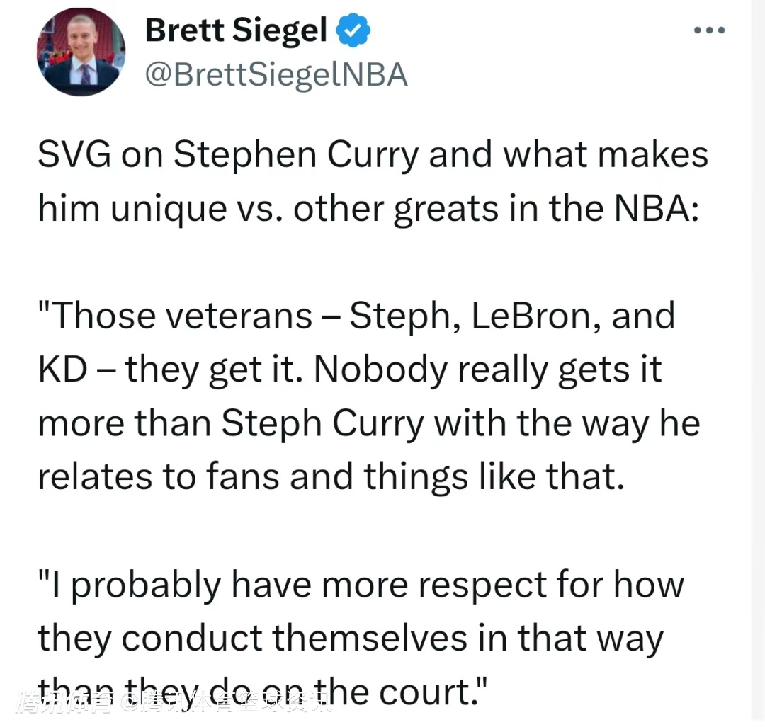 2025-10-11 09:10北京时间10月11日,名帅斯坦-范甘迪在接受采访时,谈及库里以及他与NBA其他顶级球星的不同之处。