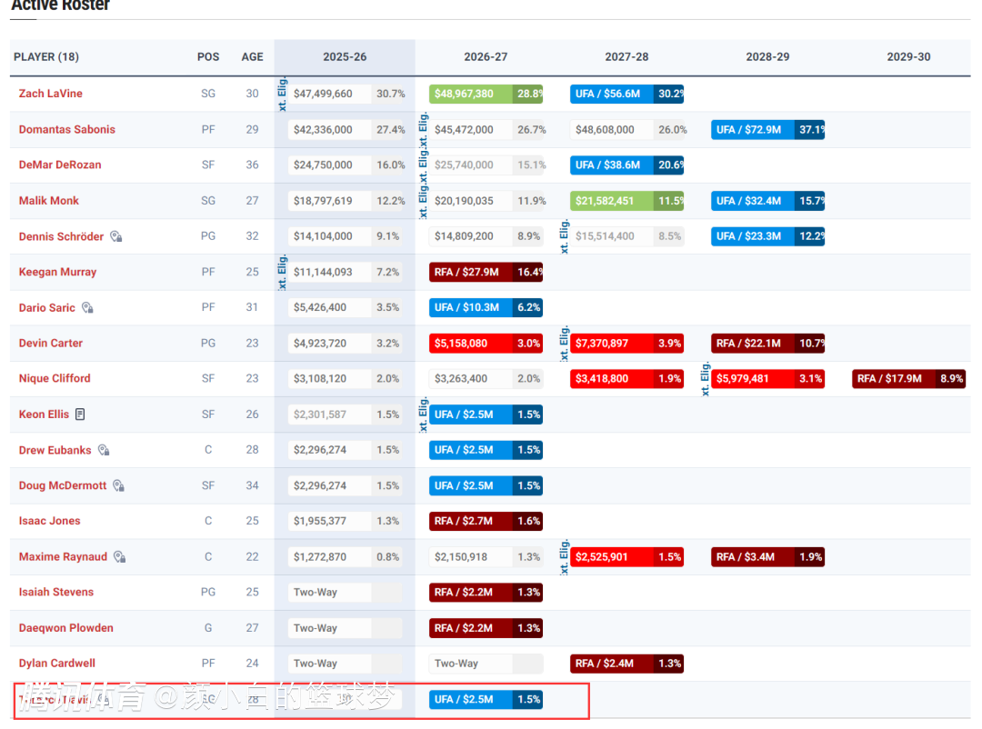 但国王队已经是15+3名单:拉文、小萨、德罗赞、蒙克、施罗德、穆雷、卡特、沙里奇、克利福德、尤班克斯、麦克德莫特、琼斯、埃利斯、雷诺、特伦斯-戴维森;史蒂文斯、普罗登、卡德维尔(三个双向)。