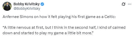 安芬尼-西蒙斯谈凯尔特人生涯首秀:一开始有些紧张 下半场逐渐冷静