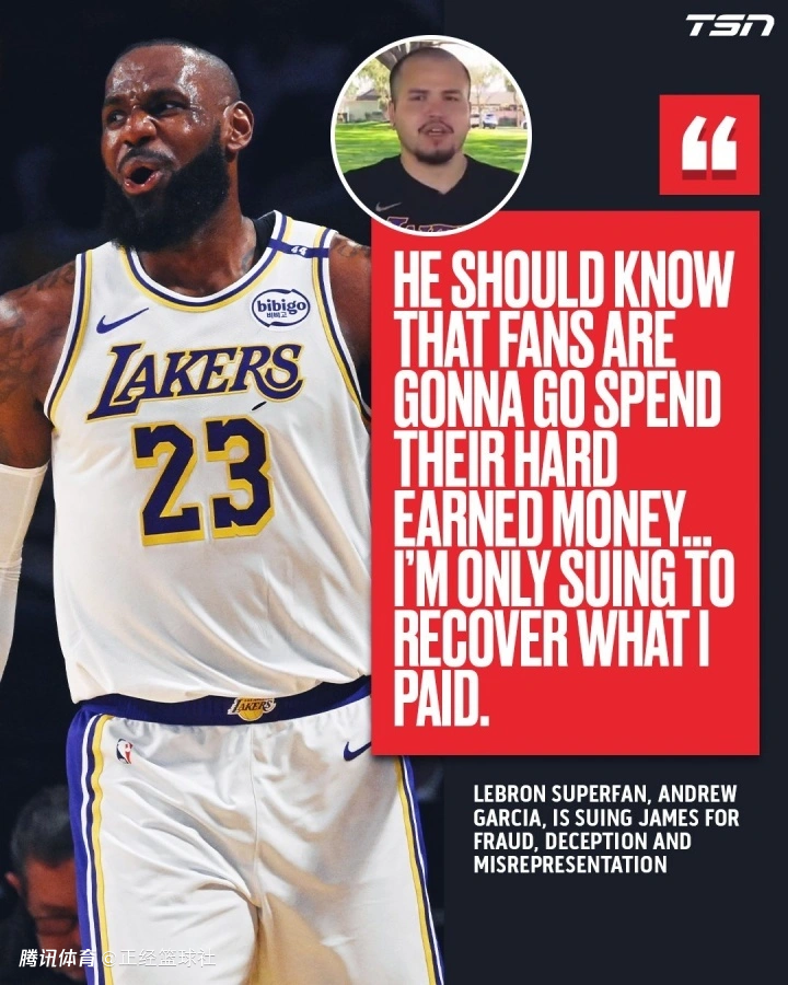 詹姆斯真摊上事了!起诉他的球迷:如果他不收传票我就去湖人主场给他