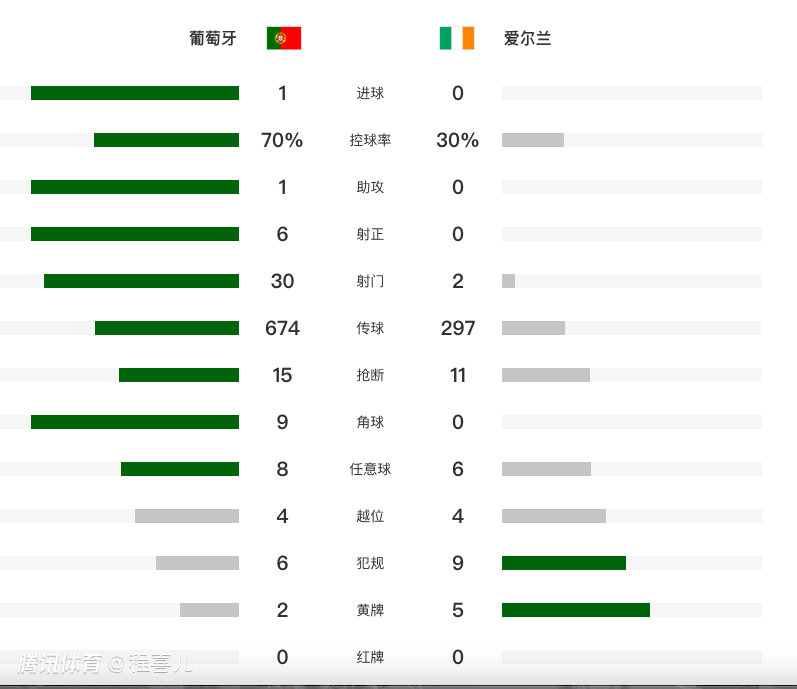 第30分钟,鲁本·内维斯传中,C罗高高跃起准备攻门,爱尔兰防守球员做出关键解围。