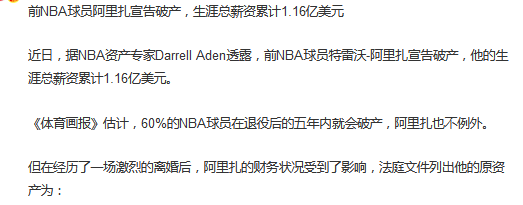 这一笔养老金,对于早已实现财富自由的姚明而言,或许只是九牛一毛,但也代表着姚明在NBA取得的成就,具备更多的保障。要知道,霍华德,阿里扎等知名球星都是退役之后,挥霍无度导致宣布破产。