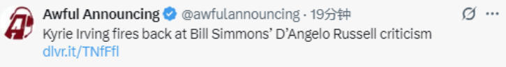 此前比尔-西蒙斯在节目中表示:“你们知道拉塞尔是怎样的人吗?他就像你那位来做客的朋友:只待一天的时候感觉特别好,但到了第六天你就会想‘唉,我盼着他赶紧走了’。这就是拉塞尔,他适合‘只待一天’的模式,放到现在的情况里,就是他加盟独行侠的前两个月可能会表现出色,而球队也会经历拉塞尔的所有阶段,对吧?他们一开始会觉得‘哇,这交易太值了。天呐,拉塞尔今晚拿了35分,太厉害了’。但他们不用操心季后赛版本的他,因为到那时候欧文就该复出了。”