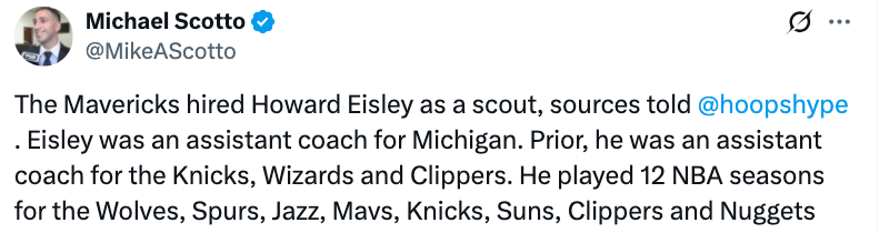 球员时期曾在NBA多队效力!独行侠聘请霍华德-艾斯利担任球探