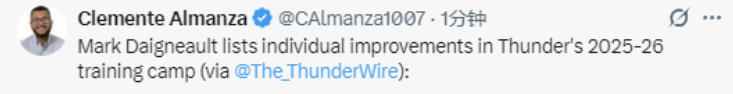 2025-10-14 09:00北京时间10月14日,雷霆队主教练戴格诺特接受媒体采访,谈到了雷霆队球员们在训练营中的进步情况。