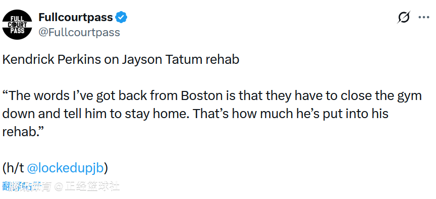 而对于塔图姆过于刻苦的表现,名嘴帕金斯这样说道:“我从波士顿那边得到的消息是,球队都得把训练馆锁门,劝他回家休息。他在康复训练上投入的精力,已经到了这个地步。”