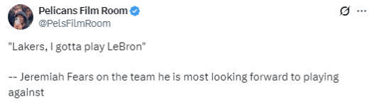 2025-10-14 10:40北京时间10月14日,鹈鹕队新秀费尔斯表示,自己新赛季最希望对决的对手是湖人队球员勒布朗-詹姆斯。