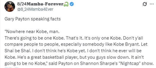 2025-10-14 11:40北京时间10月14日,雷霆队球员亚历山大在接受采访时表示,自己想成为比科比更棒的球员。而前NBA球星加里-佩顿在谈到亚历山大与科比时表示,前者与后者之间还存在着不小的差距。