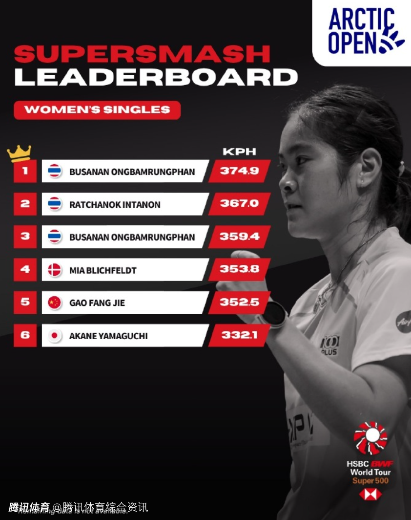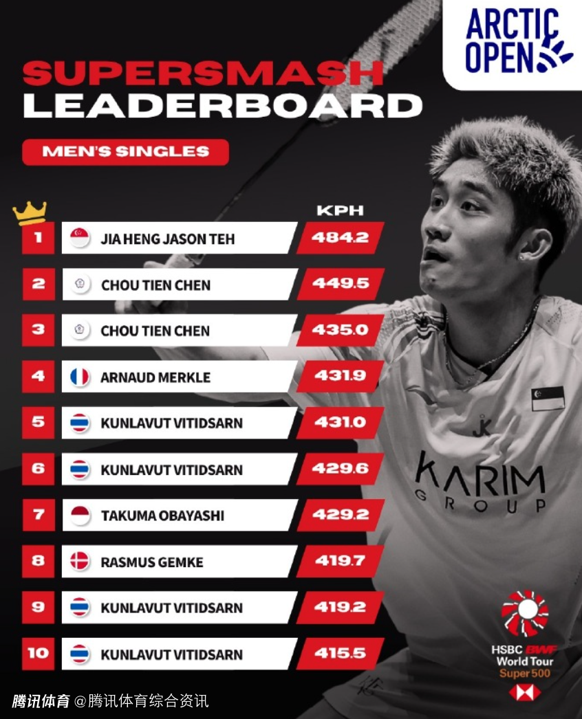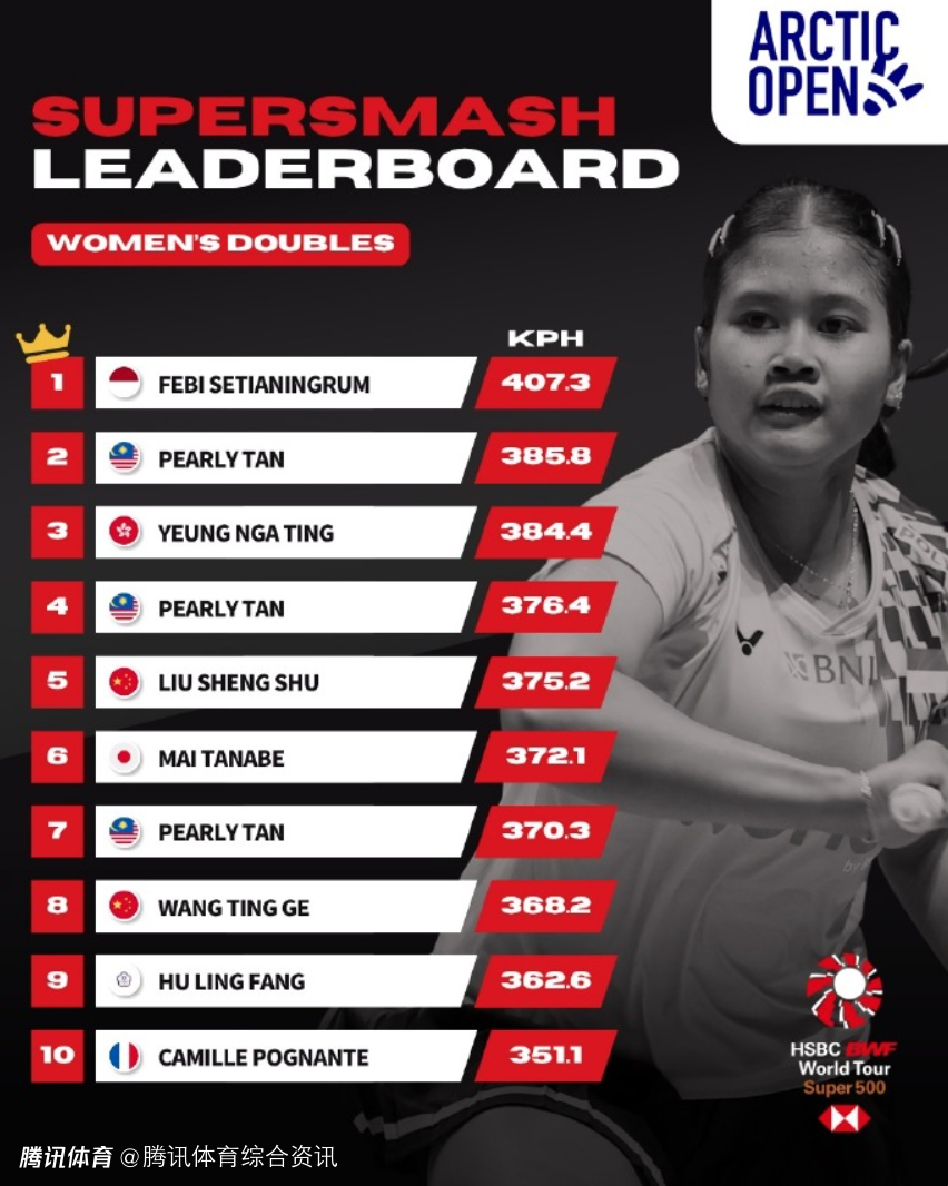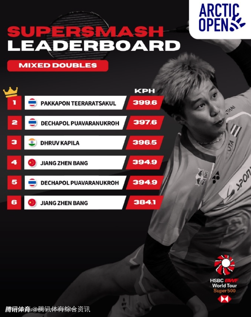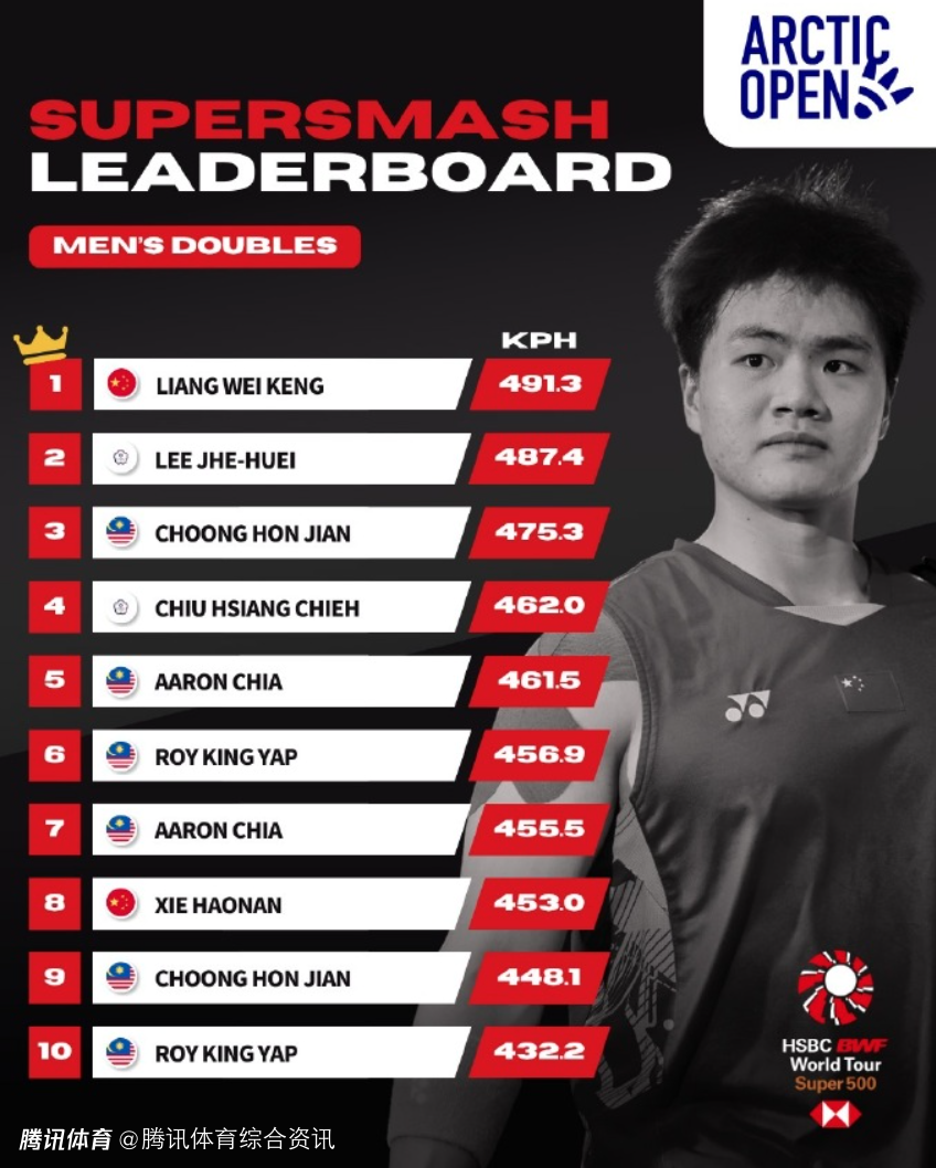 北极羽毛球公开赛杀球时速排行榜:梁伟铿高居男双榜首 高昉洁位列女单第五