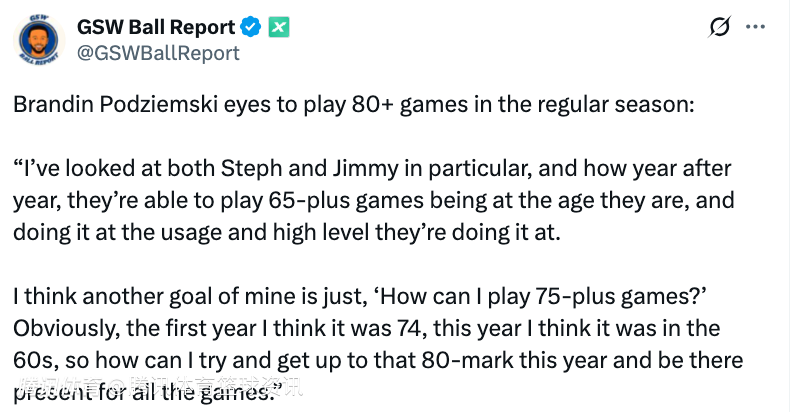 2025-10-14 23:40北京时间10月14日,近日,勇士后卫波杰姆斯基接受了媒体的采访,他表示自己期望在新赛季的常规赛出战80场以上的比赛。