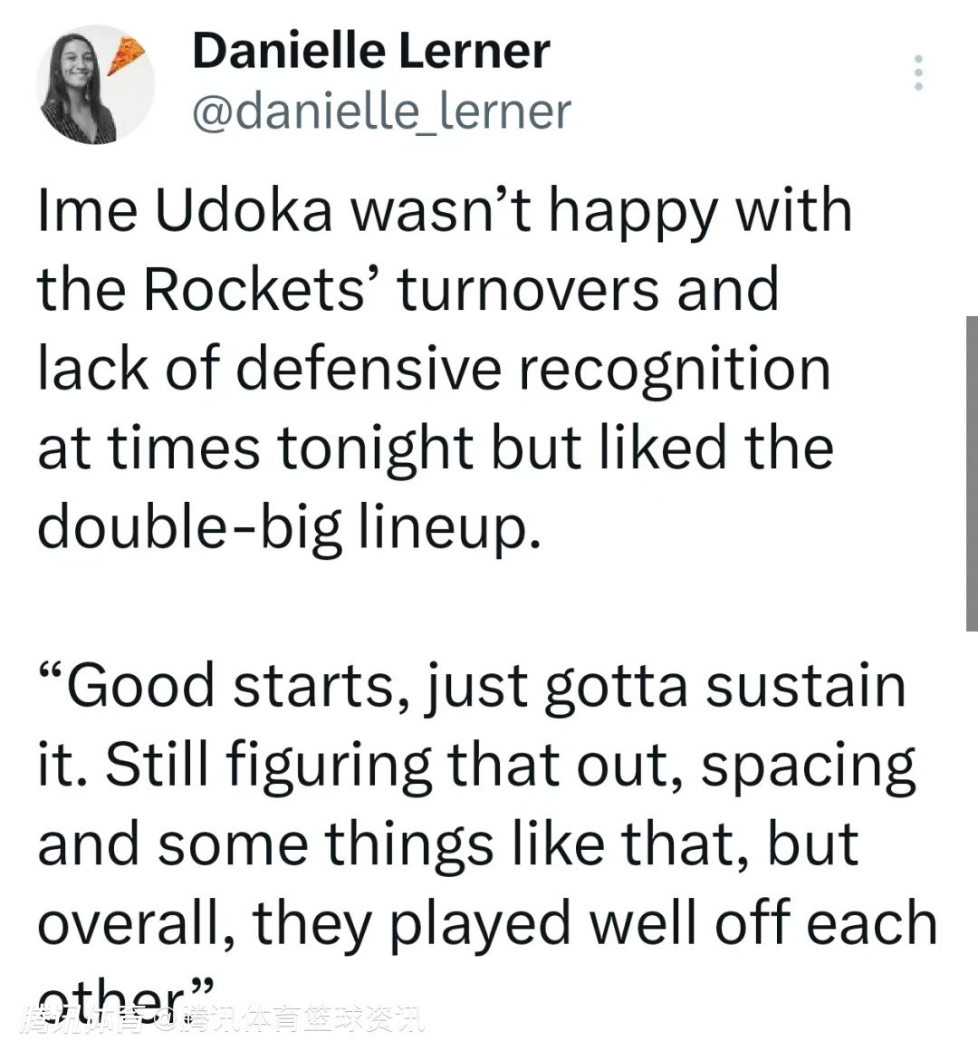 乌度卡:火箭双塔开局不错 季前赛收官战或轮休杜兰特申京