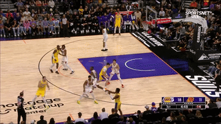 第一节湖人29-22领先7分,东契奇开场撤步三分不中,回归第一球打铁后他持球单挑戏耍马鲁阿奇,打成不讲理2+1秀翻全场,随后继续造杀伤罚球得分,招牌抛投一击即中,在配合中助攻艾顿空接暴扣,紧接着东契奇轰进三分球。