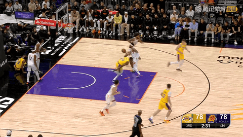 易边再战,东契奇撤步跳投先拿2分,但太阳迅速回击。第3节还剩2分31秒时,科洛科补扣帮助湖人80-78再度领先。紧接着还剩2分25秒时,古德温左侧弧顶三分命中并造成犯规,追加罚球也中,太阳反超至82-80,完成反超的关键4分打击。
