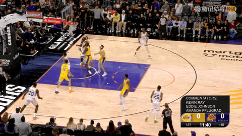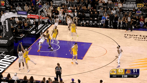随后太阳掀起追击:马鲁阿奇空切双手扣篮、巴特勒连拿4分,马鲁阿奇再度吃饼将分差缩小到10分。半场结束,湖人66-56仍握10分优势。