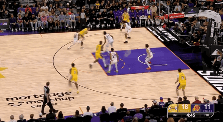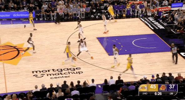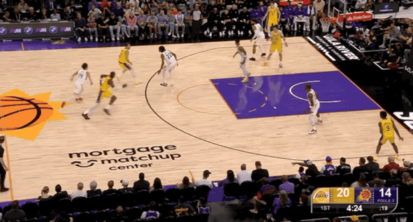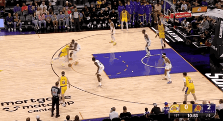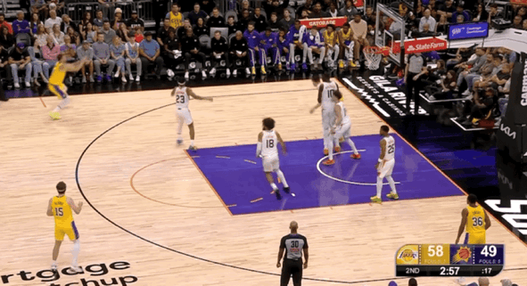 次节比赛,太阳多次迫近分差,但湖人总有回应。东契奇在本节还剩下7分32秒回归,他再度盘活整支队伍,湖人实现三分四连击再度拉开分差到双位数。东契奇在线外给到太阳太多的防守压力,一旦太阳采取盯防,东契奇就能突破造犯规罚球得分,湖人始终牢牢地把握着场上主动权。