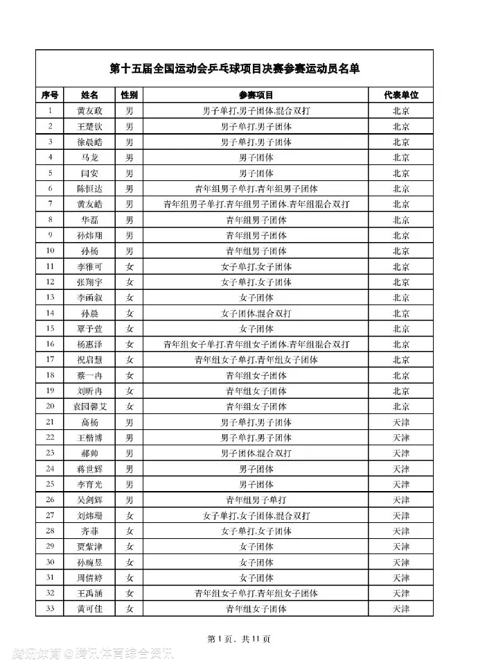 2025-10-15 15:00北京时间10月15日,全运会乒乓球项目决赛参赛运动员名单公布,马龙将参加全运会男子团体项目,巴黎奥运会女单冠军陈梦将继奥运会后首次亮相赛场,出战女单和女团的比赛,巴黎奥运会男单冠军樊振东将出战男单和男团的比赛。