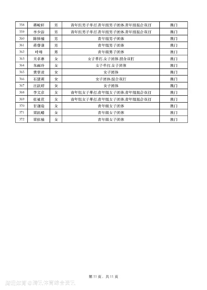 全运会乒乓球项目将于2025年11月7日-20日在澳门银河综艺馆进行。