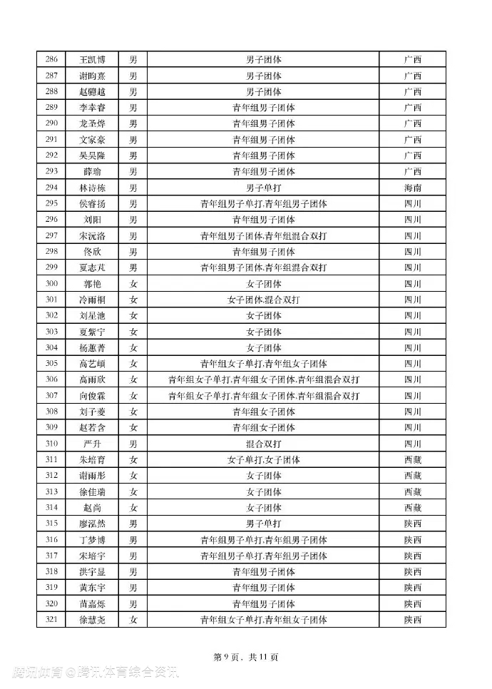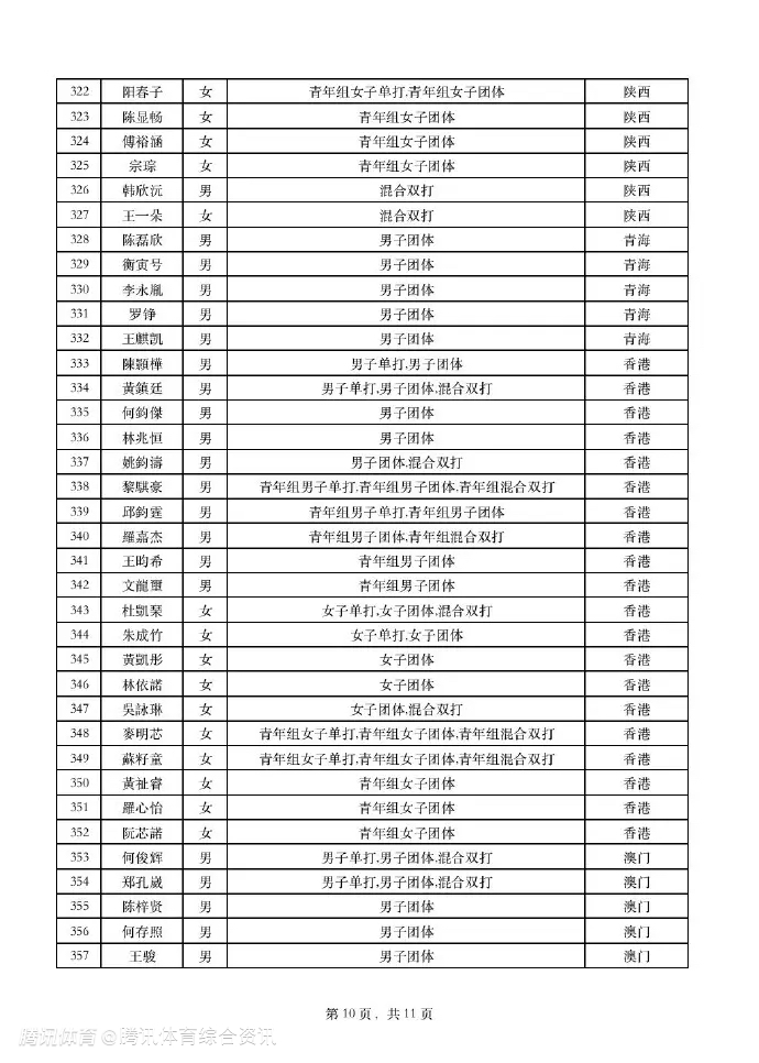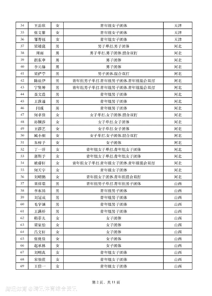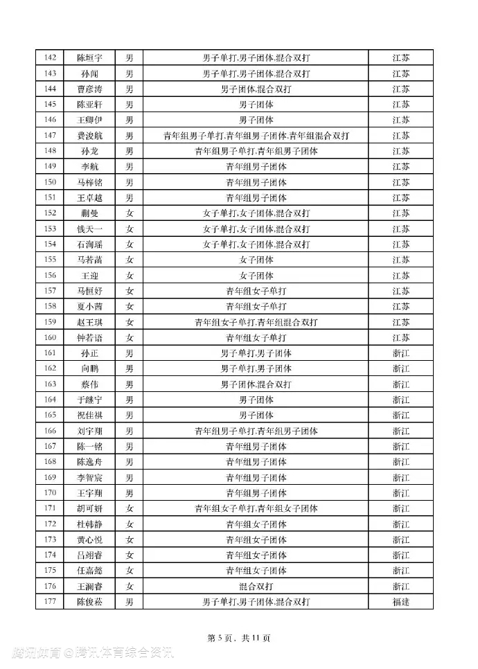 全运会乒乓球项目运动员名单公布:马龙仅出战男团 陈梦樊振东出战单项与团体