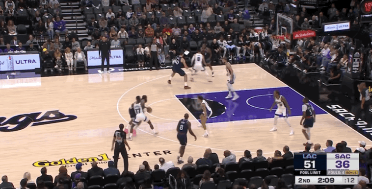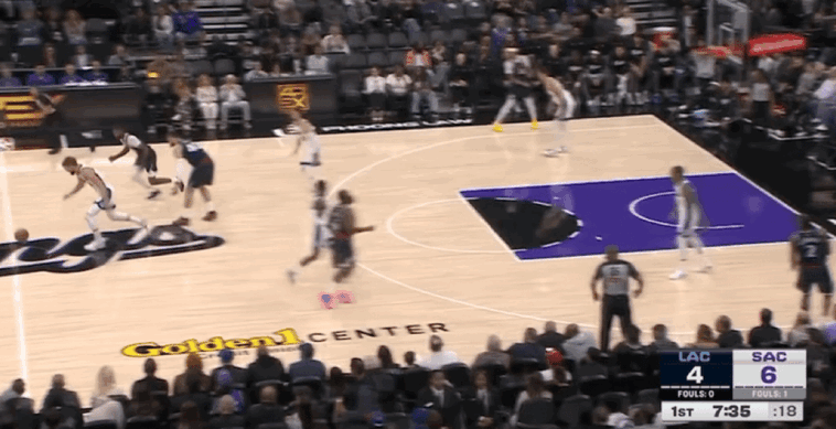 首节比赛开始,萨博尼斯空切上篮,率先为国王取得首次运动战得分。乔丹-米勒2罚全中,小琼斯空切暴扣,萨博尼斯和拉文连得6分,祖巴茨勾手打进。施罗德连续突破得手,莱昂纳德急停跳投命中,快船多点开花打出一波16-2的进攻高潮,大洛佩斯和保罗连续命中三分。首节比赛结束,快船26-18领先国王。