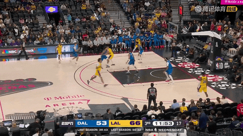 第三节还剩11分42秒时,八村垒收到克内克特助攻,急停跳投命中,湖人把比分改写为68-53,独行侠仍落后15分。