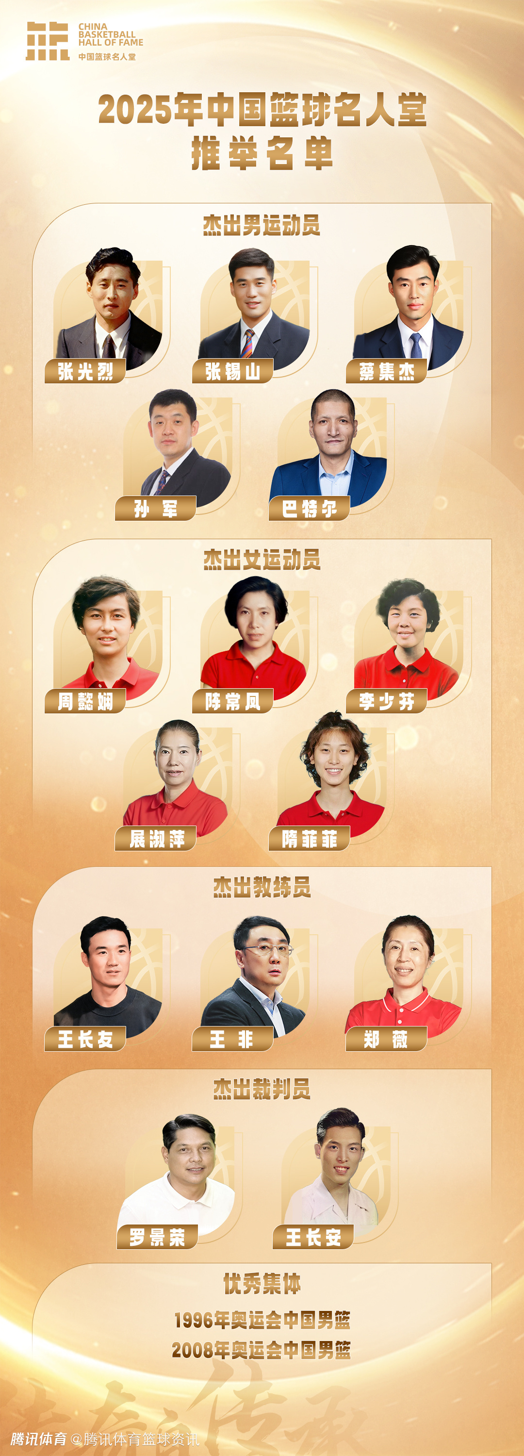 2025中国篮球名人堂举荐名单:巴特尔隋菲菲领衔 孙军王非在列