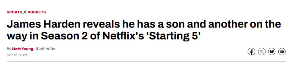 “你知道,哈登非常注重隐私,”哈登的经纪人特洛伊-佩恩说。“人们会说,‘什么?’他们会感到震惊,但没错,他是个父亲。”“哈登一直都在他儿子身边,他一直都是一个非常好的父亲。”