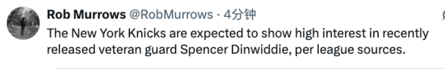 前不久,布罗格登通过ESPN发布声明,决定退役,据悉,他已将退役决定告知球队管理层。一位消息人士透露,尼克斯对此事感到震惊。此番尼克斯把目标瞄准在丁威迪身上,也希望去补强自己的1号位。