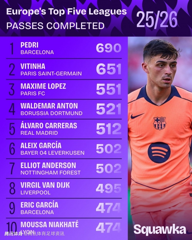 其中,皇马前锋姆巴佩以40次射门领跑射门榜,巴萨中场佩德里以690次传球位居传球榜首,国米边翼卫迪马尔科则以11次创造重大机会高居榜首。