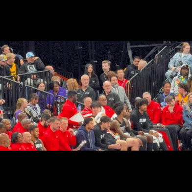 在杨瀚森6犯离场后,有球迷拍到杨瀚森坐在替补席上表情沮丧,满脸通红,一直用毛巾擦脸,而开拓者助教,前CBA外援杰特则是在一旁安慰他。