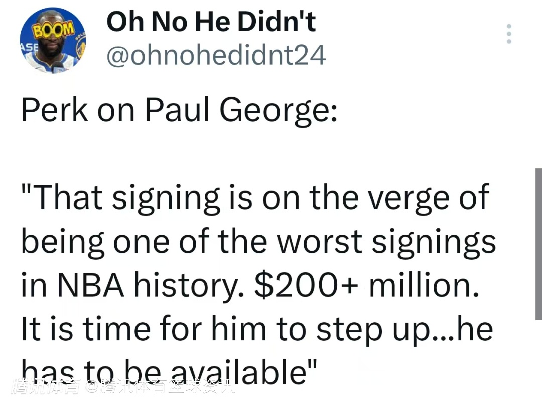帕金斯:乔治加盟76人将成为史上最差签约之一 是时候站出来上场打球了