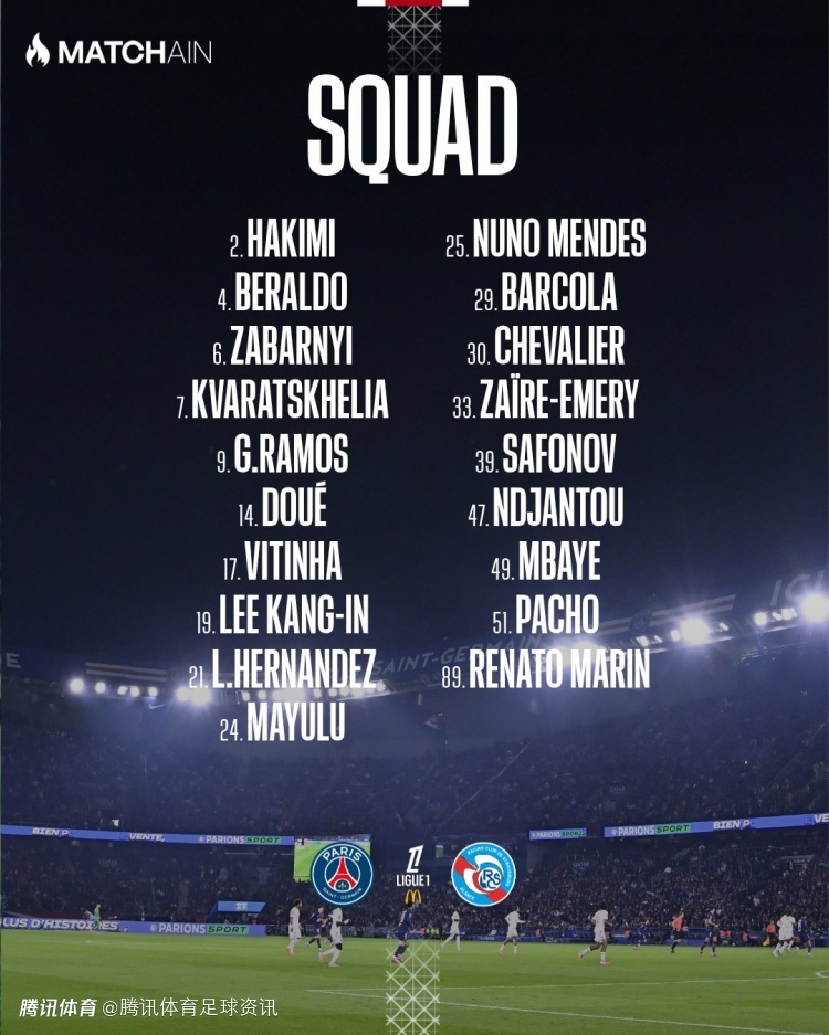 2025-10-17 16:40北京时间10月17日,明天凌晨2点45分,巴黎将在法甲第8轮比赛中主场迎战斯特拉斯堡,今日,巴黎官方公布了本场比赛大名单。