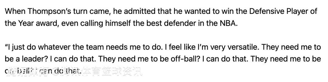 “我会做球队需要我做的任何事,我觉得自己的风格非常全面,他们需要我担当领袖?我能做到。需要我打无球?我能做到。需要我打有球?我也能做到。”